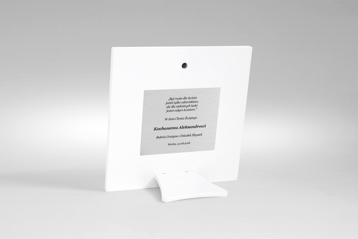 Nadaj pamiątce wartość sentymentalną - wzbogać ją o tabliczkę z indywidualną dedykacją. Tabliczka wykonana jest techniką grawertonu, co oznacza, że na cienkiej aluminiowej płytce zostaje nadrukowany wybrany przez Ciebie tekst. Technika grawertonu gwarantuje elegancki wygląd tabliczki oraz jej trwałość.