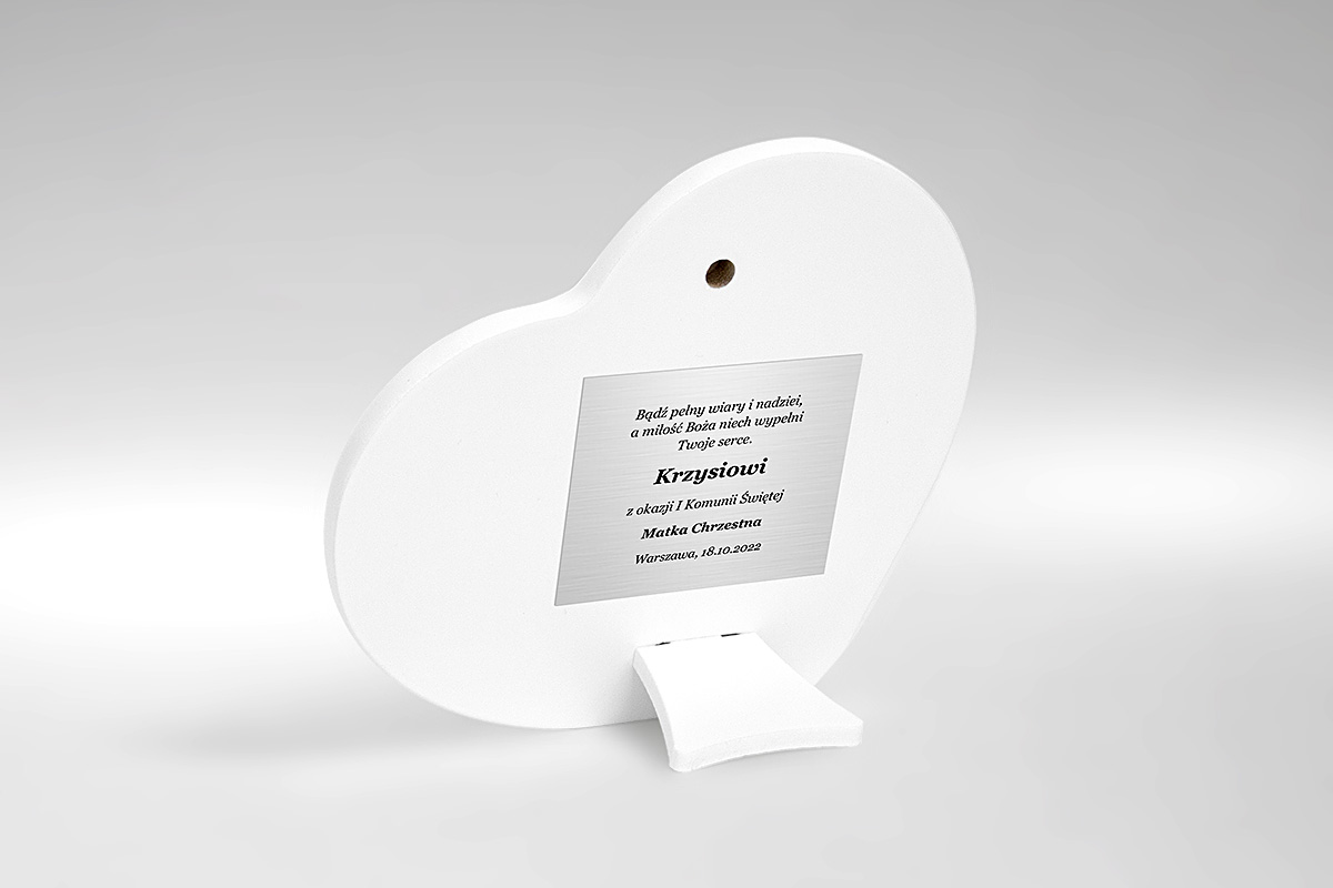 Nadaj pamiątce wartość sentymentalną - wzbogać ją o tabliczkę z indywidualną dedykacją. Tabliczka wykonana jest techniką grawertonu, co oznacza, że na cienkiej aluminiowej płytce zostaje nadrukowany wybrany przez Ciebie tekst. Technika grawertonu gwarantuje elegancki wygląd tabliczki oraz jej trwałość.