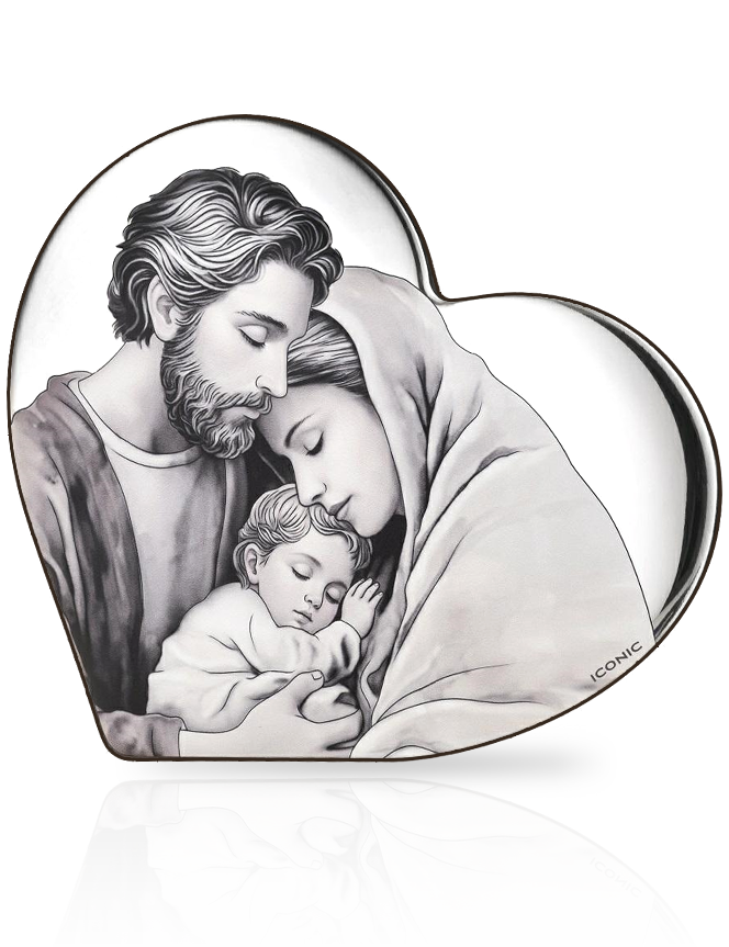 Religijne obrazki Święta Rodzina na aluminium z grawerem