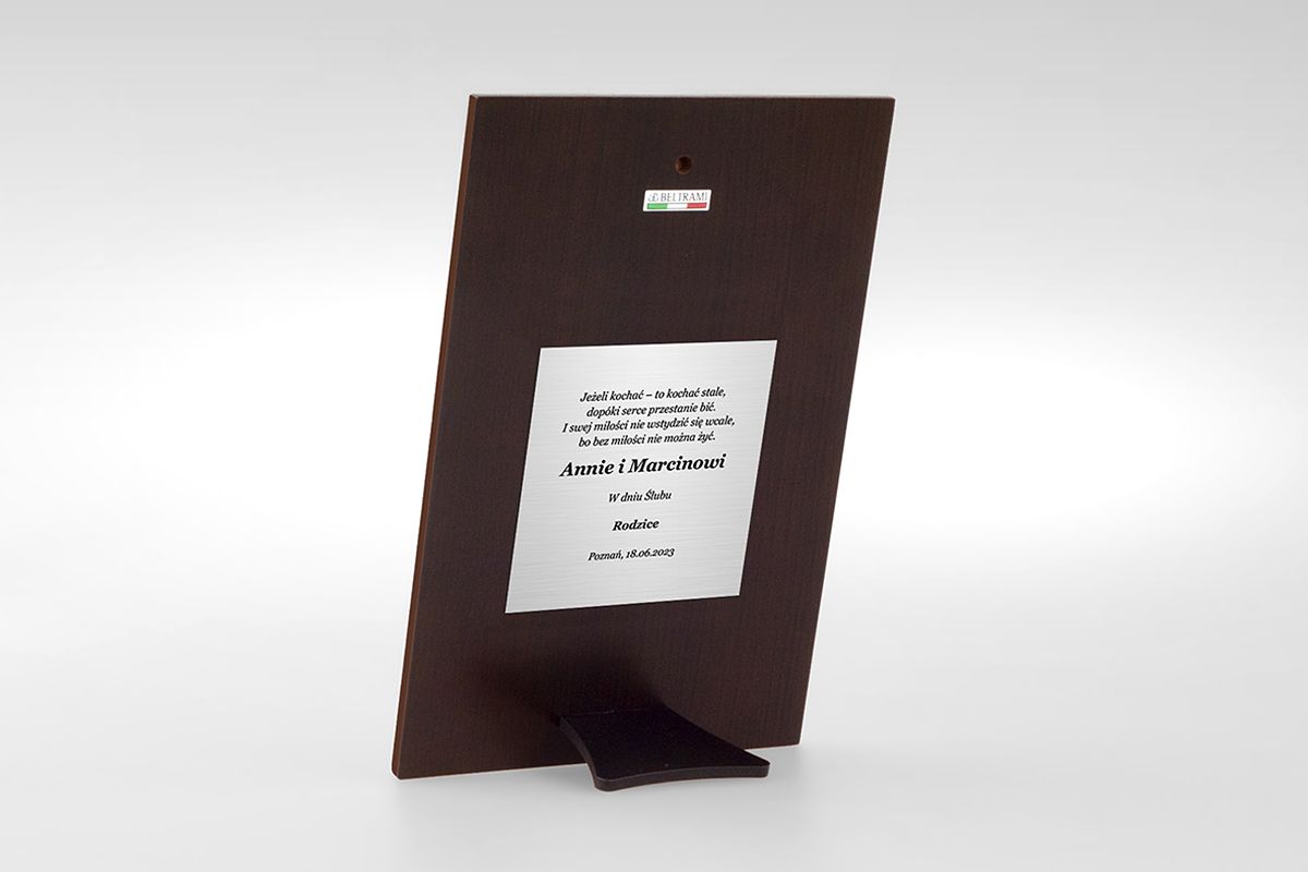 Nadaj pamiątce wartość sentymentalną - wzbogać ją o tabliczkę z indywidualną dedykacją. Tabliczka wykonana jest techniką grawertonu, co oznacza, że na cienkiej aluminiowej płytce zostaje nadrukowany wybrany przez Ciebie tekst. Technika grawertonu gwarantuje elegancki wygląd tabliczki oraz jej trwałość.